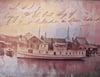 LOOKING BACK - "The Viking" at Richardson Boat Shop, Deer Island, NB. Once an important boat shop in the Bay of Fundy, this updated and colored version is for an old ship called "The Viking". Check out the comparison with the original.