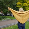 This shawl is knit from the centre, top down, with arched twisted rib cables running at its centre spine echoing the arches and spires of Westminster. It is finished with a deep twisted rib border.