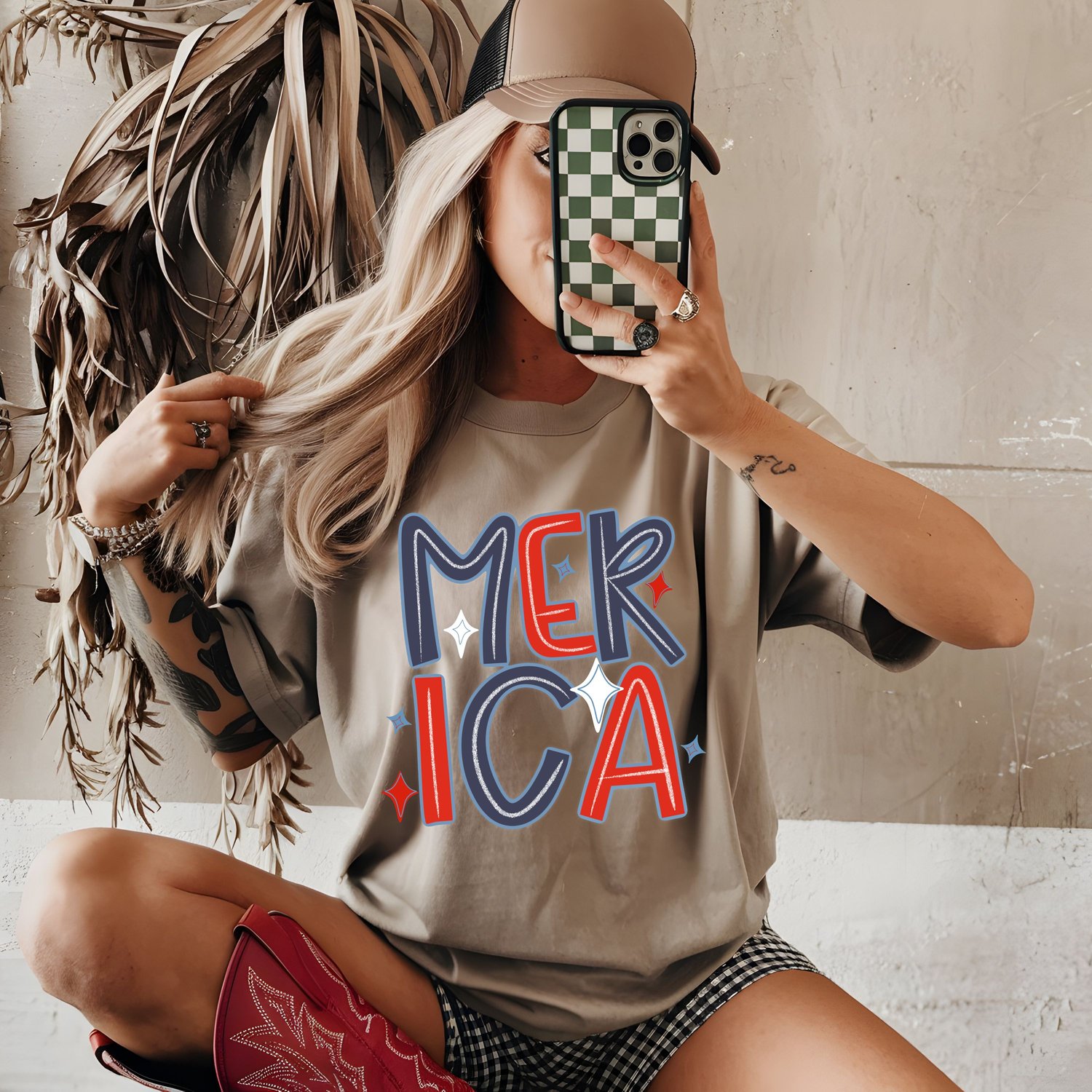 Retro America Checkered Png, Land of the Free Png, America png, 4th of July Png, Independence Day png, Retro 4th of july png, Trendy Designs