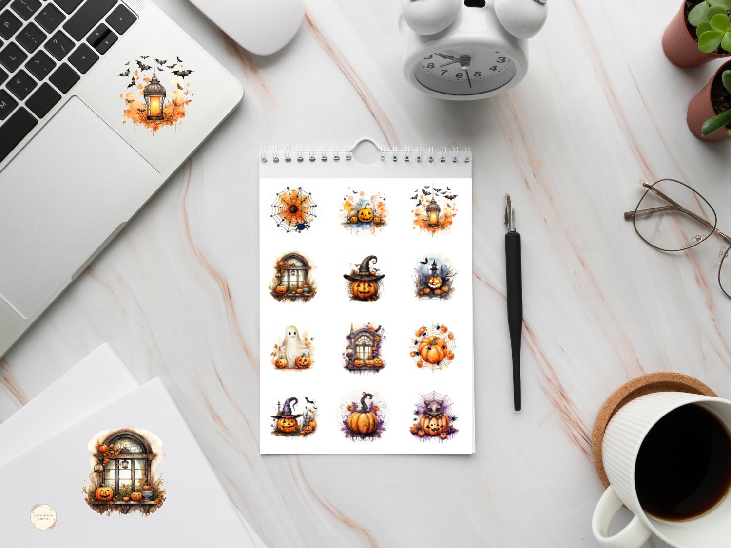 Get into the Halloween spirit with this charming Watercolor Halloween Sticker Sheet! Featuring pumpkins, ghosts, and spiders, these stickers are perfect for planners, scrapbooking, DIY crafts, notebooks, and more. Simply print at home on sticker paper, cut, and start decorating with a touch of spooky watercolor magic.