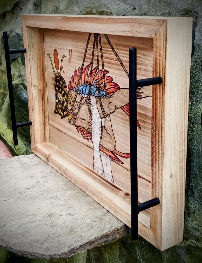 This listing is for a large rustic serving tray with hand burned image.