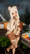 ✦ 4 tops , 5 bottoms , 4 shoes, Clothing shifts (black/brown/white), 4 hairs ( hue sliders and shade options) , 19 Accessories , 3 layer-able items, 6 Body modifications, (skin tone slider, wet skin, eye hue slider, eye saturation slider), Puppy ears, Puppy Tail