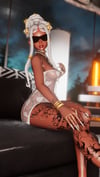 Hair dreads,Hair bun,Hair wavy short,robe,tail,pants,bubble slides,rich bich heels,wedge sandals,chunky sandals,hoop earrings,Pearl earrings,Pearl necklace,Nip rings,Dog ears,Icecreams/icelolly,hat,waist chain