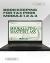 Bookkeeping for Tax Pros promotes a resource bundle designed for tax professionals, featuring tools like a course presentation, e-book, bookkeeping agreement, engagement letter, confidentiality agreement, and a budget planner. The materials are brandable, making it easy for professionals to customize and enhance their services. A vibrant, creative design highlights the comprehensive resources provided.