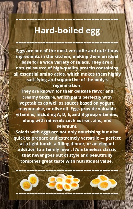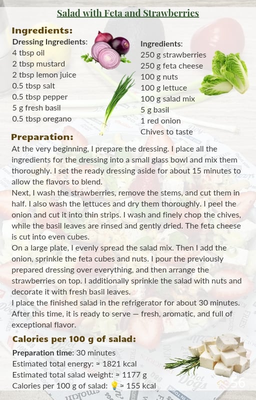 each with accurately calculated calories per 100 g of the finished salad.