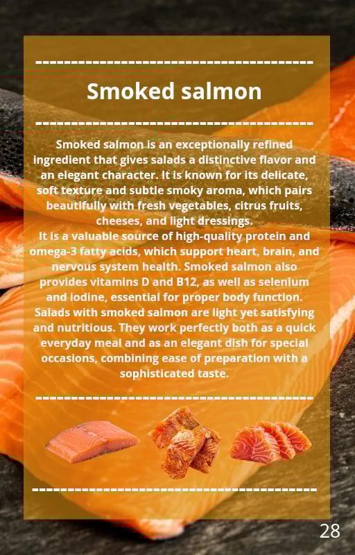 • salads with ham, seafood, and plant-based options
