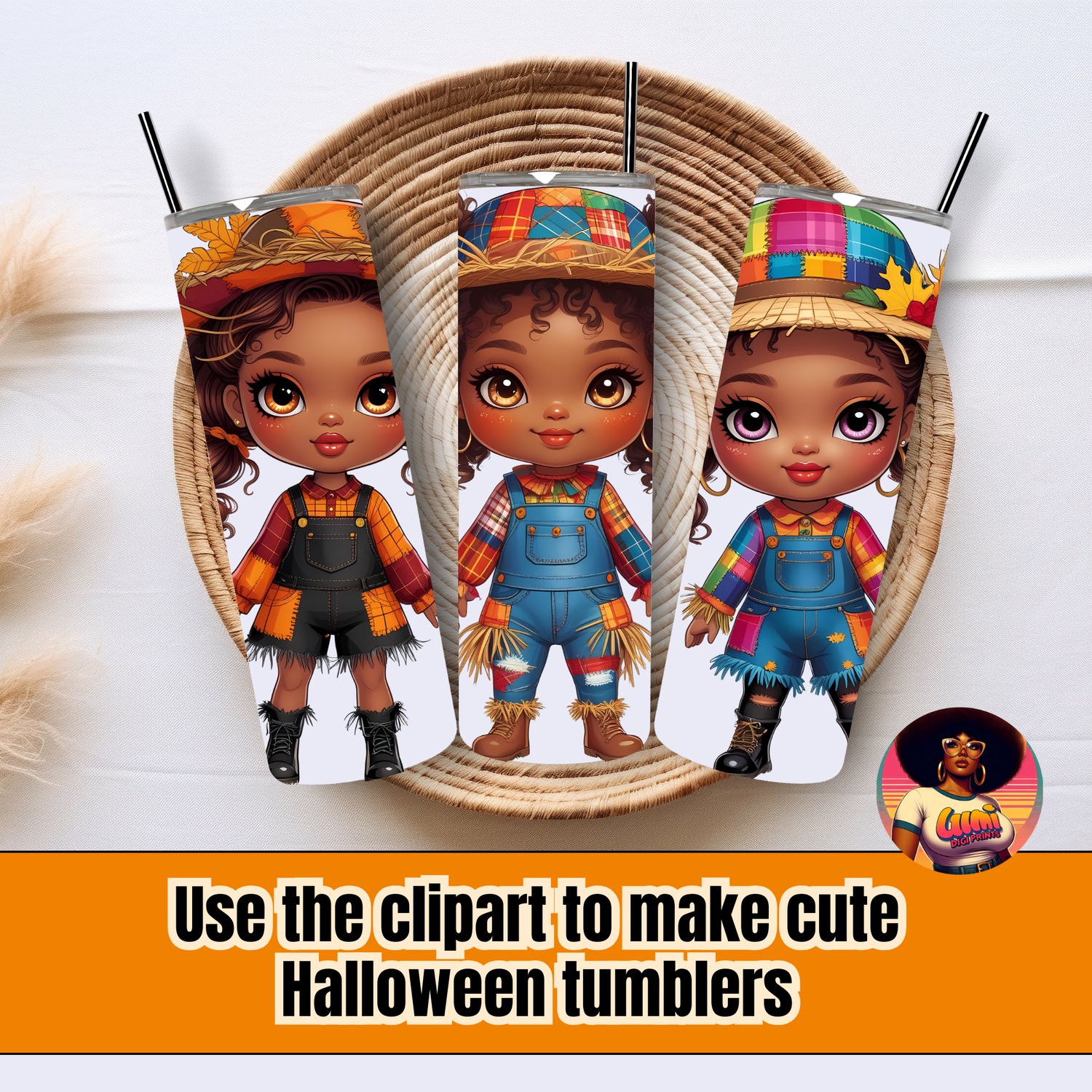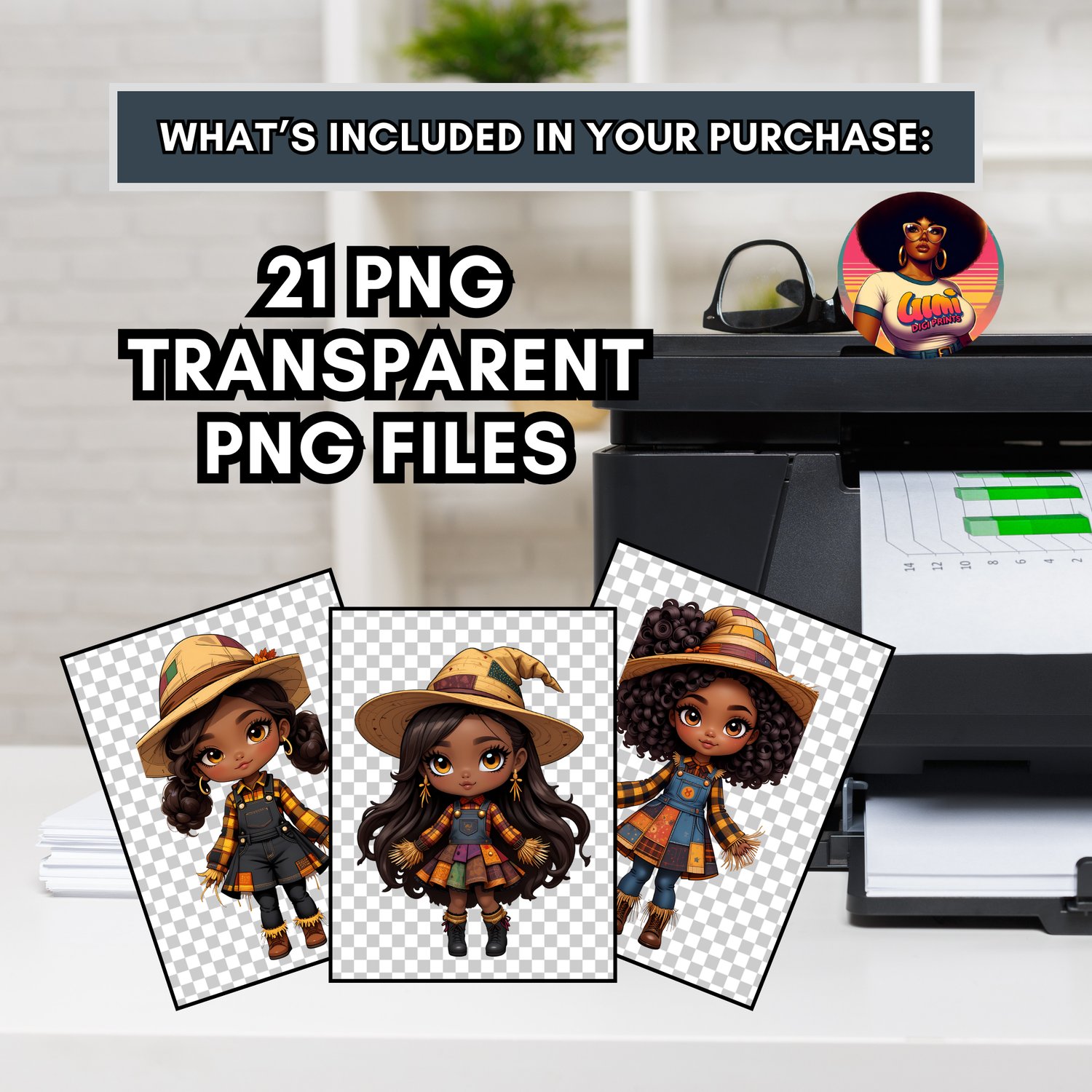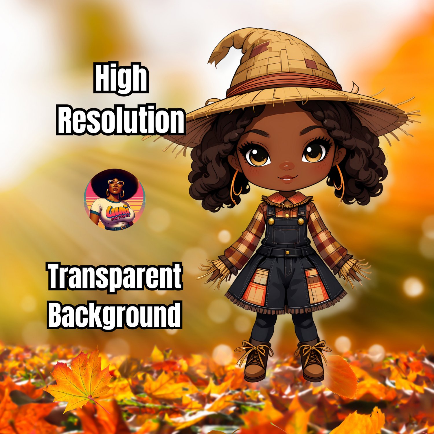 Instantly Download: 21 Adorable Black Girl Scarecrow PNGs for Your Fall & Halloween Projects!