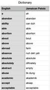 Jamaican Patois, also known as Patwah or Jamaican Creole by linguists, is an English-based creole language heavily influenced by predominantly West African languages and some Arawak, Spanish, and other languages. It is primarily spoken in Jamaica and among the Jamaican diaspora. Jamaican Patois has also spread to other Caribbean countries, the United Kingdom, New York City and Miami in the United States, and Toronto, Canada. Many non-English words in Patois originate from the West African Akan language. It is the native language of most Jamaicans.