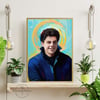 This digital painting in the style of thick oil paint (impasto) of Saint Carlo Acutis is a variation of another painting available here. Suitable for any interiors. Excellent gift for all nerds.