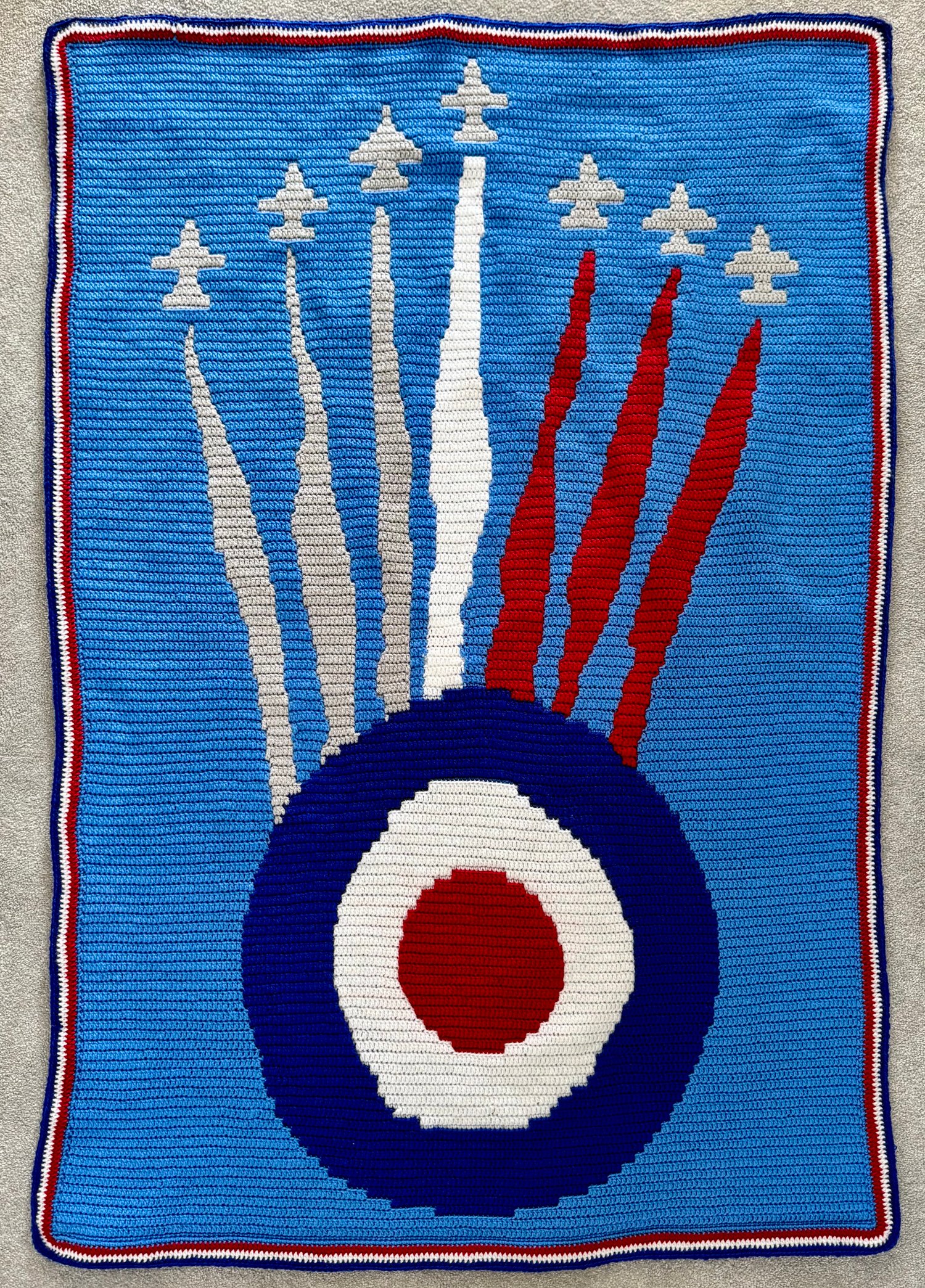 #RedWhiteandFlight #RAF #Roundel #CrochetBlanketPattern #MosaicBlanket #CrochetPattern #MosaicOverlay #Aviation #Patriotic #JetFormation #RedWhiteandBlue