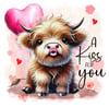 Adorable highland cow blowing a kiss. 2 PNG files; one with “A Kiss For You” text, one without. sublimation, print. Valentine, love.