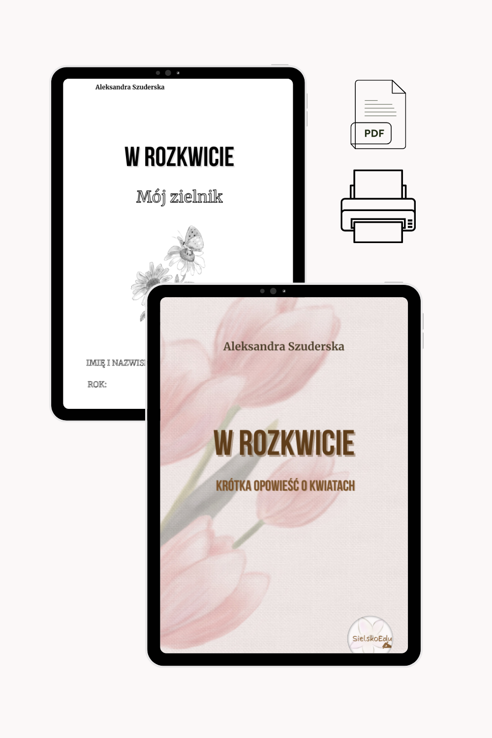 - „W rozkwicie. Mój zielnik” – ilustrowany zielnik do uzupełniania, wklejania i kolorowania – idealny do pracy w terenie, w domu lub w szkole.