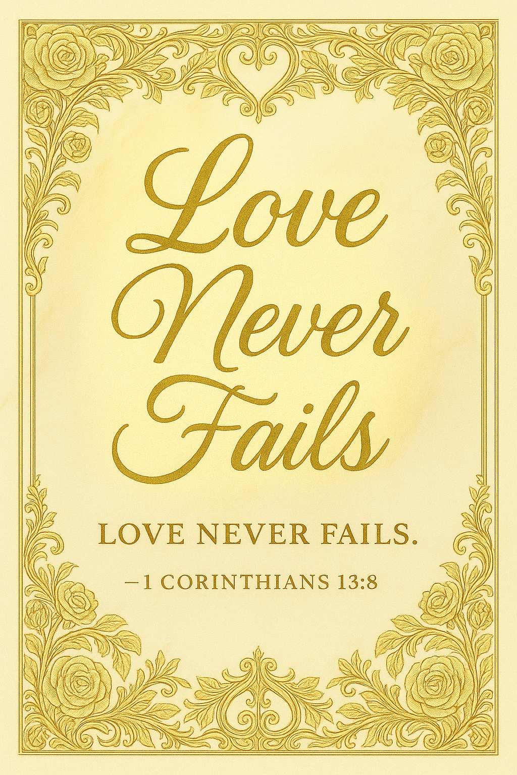 💛🌸 Christian Scripture Wall Art – 1 Corinthians 13:8 Love Never Fails Poster – Faith-Based Printable for Homeschool, Devotion & Ministry – Enduring Love Theme