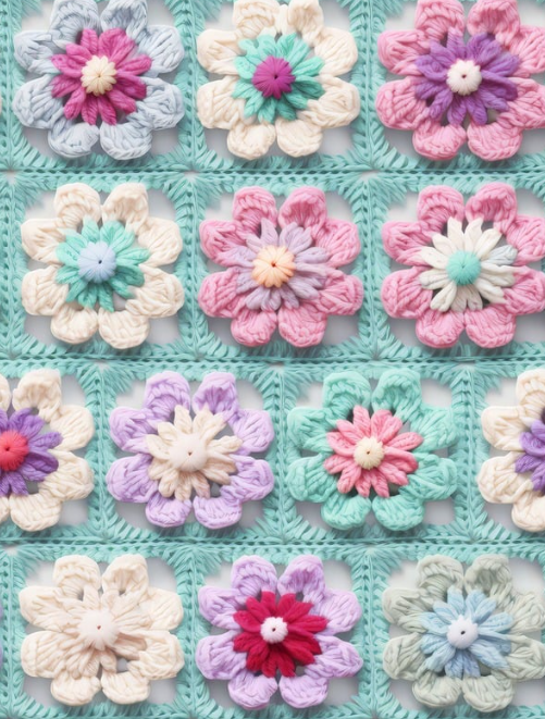 Granny Squares Scrapbook Papers to Cut and Collage PDF Printable Version