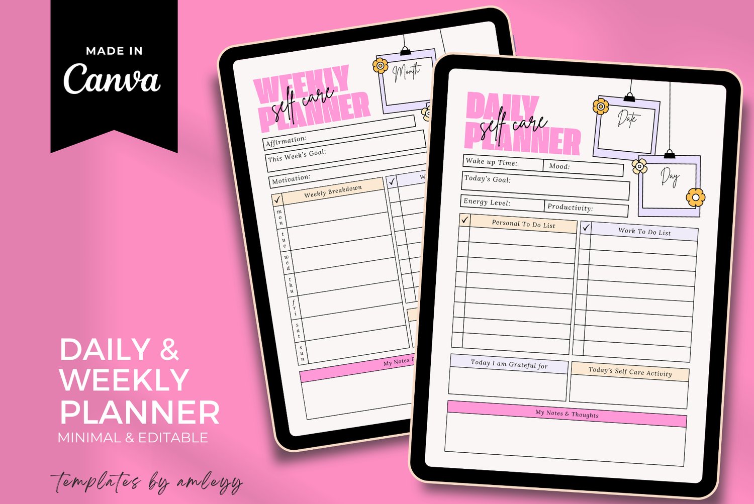 Aesthetic Daily & Weekly Self-Care Planner Canva Template | Editable Wellness & Self Love Digital Planner | Printable & Digital Download