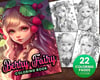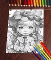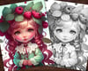 22 Berry Fairy Cute Forest Girl Anime Coloring Page Book, Adults + kids- Instant Download Grayscale Coloring Page - Gift, Printable Art PDF
