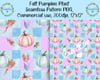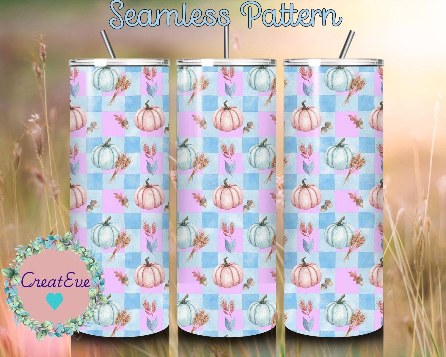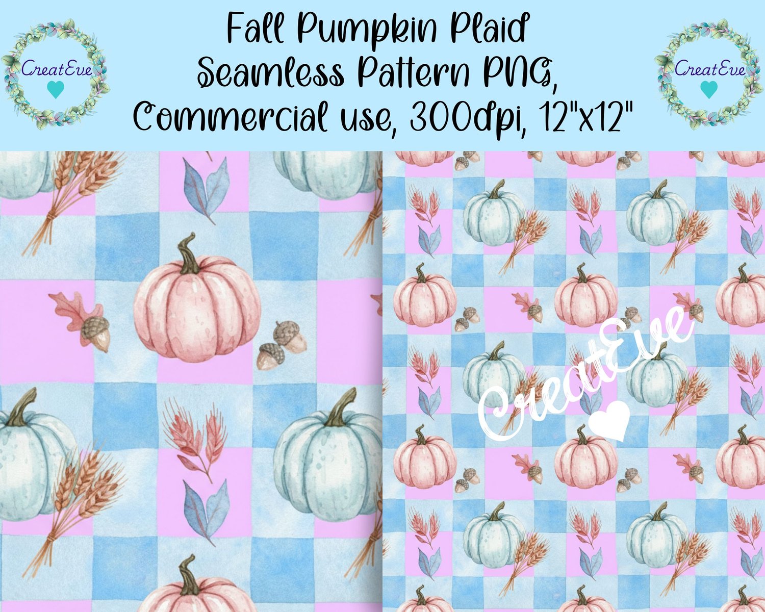 Plaid Autumn Pumpkin Seamless Pattern Commercial Use 300dpi, 12"x12" PNG