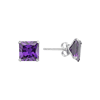 8 mm Square Solitaire Amenthyst CZ Stud Earrings