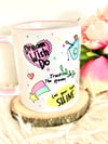 1 plain mug wrap with no wording so you can personalise with your own quotes.