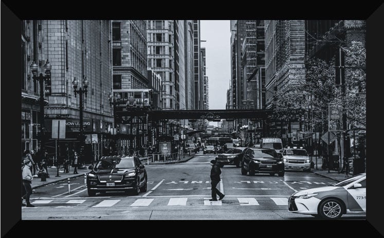 This is an image of Downtown Chicago in black and white on a cold winter day. This shot was taken by PROLYPHIQ. (SEAN WEST)