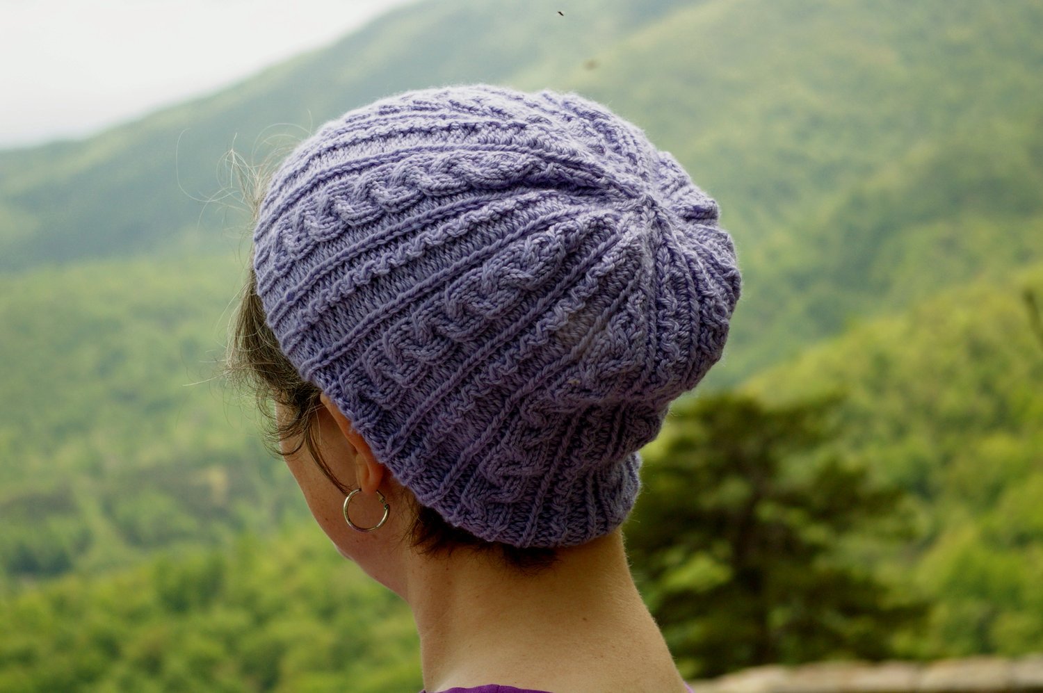 The Shenandoah National Park, through which Skyline Drive snakes, is very close to my home in the mountains of Virginia. At all times of year we like to go up in the Park for quick hikes with the dog and kids. This hat is named for one of my favorite little spots—a little tricky to get to but breathtaking once there. It mixes twists, cables, and a little slipping, just like my hikes do.