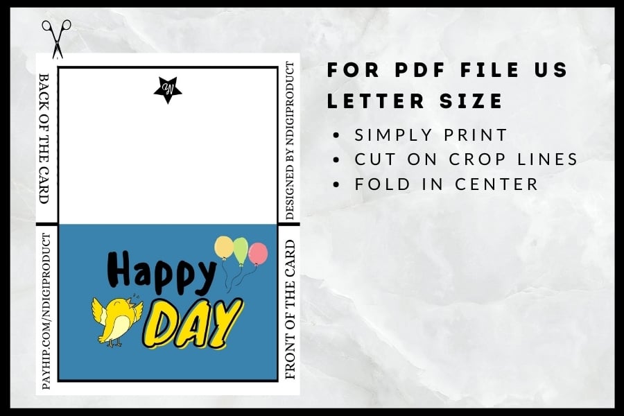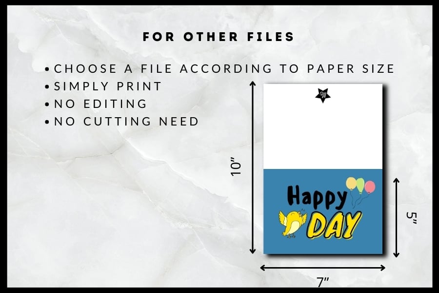 Images displayed are for idea only. This BIRTHDAY CARD is an INSTANT DIGITAL DOWNLOAD - No physical product will be shipped . Once your payment is processed the digital files will be available for download immediately.