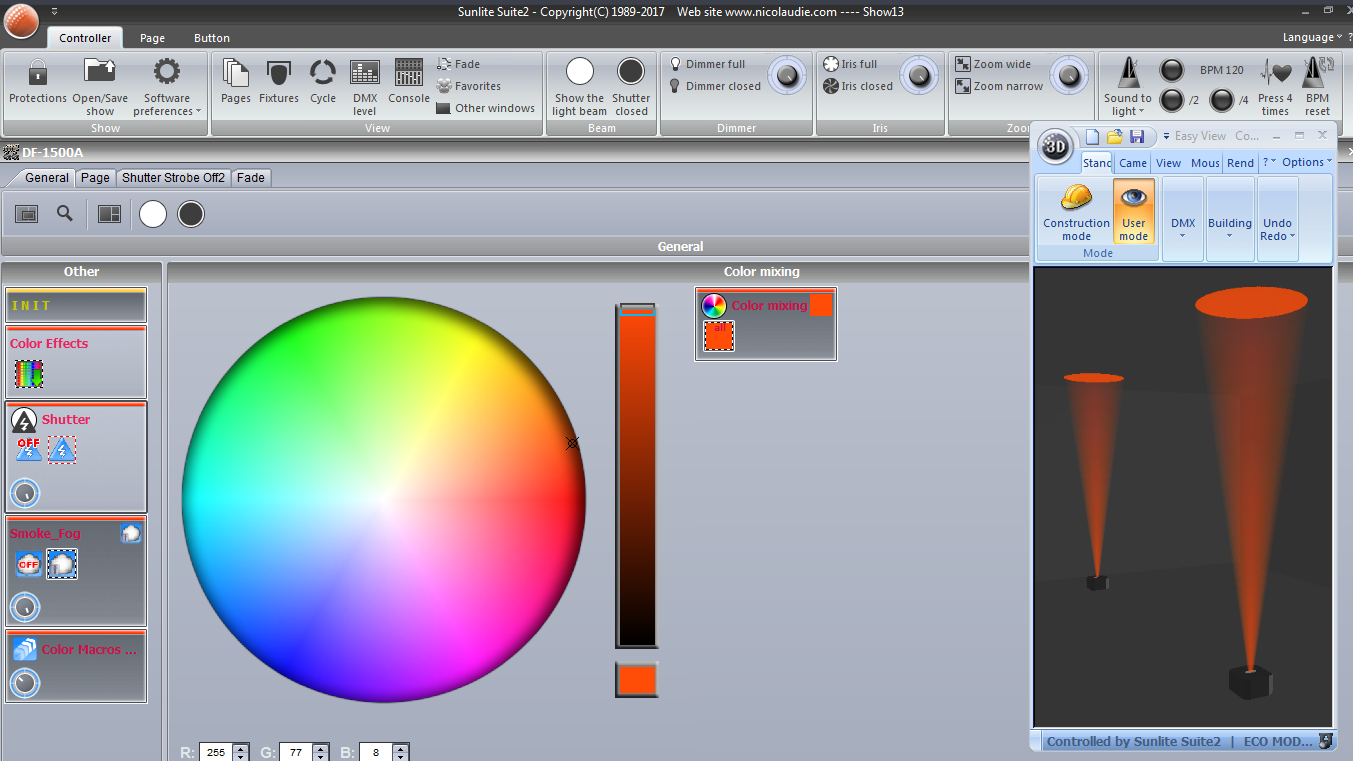 Librería para Sunlite Suite 2 de esta Máquina de Humo Led, "DF-1500A" de Digi-Light (6CH).