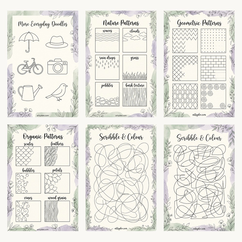 Your complete calming doodle practice in one printable journal.