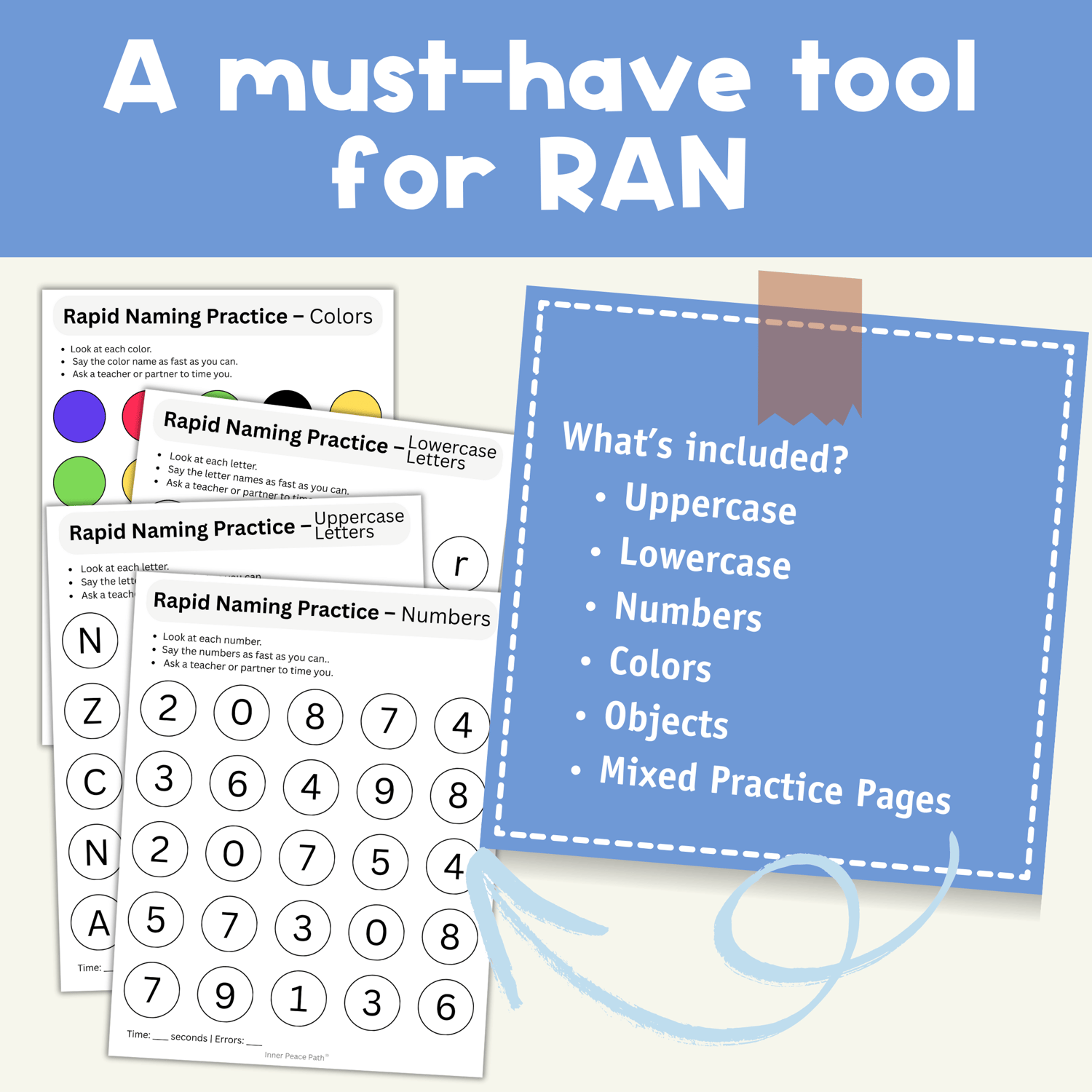 π Boost reading fluency with these Rapid Automatized Naming (RAN) practice worksheets! π― This resource helps students quickly name π¨ colors, π’ numbers, π€ letters, and π§Έ objects to build speed, accuracy, and confidence.