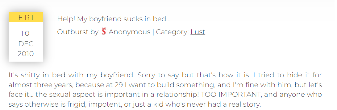 So, if you want to keep complaining that your sex life is not exactly as you would like it to be, go ahead.