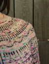 The Illusionist is a top-down, yoked sweater, featuring stranded colourwork throughout the yoke, upper body and sleeves. The design explores how colourwork can be combined with a fade and the impact that the fade can have on the appearance of the colourwork. The colourwork pattern has a strong, geometric theme, but the overall impact of the pattern is lessened by the way in which it blends and combines with different background colours, creating a sense of illusion or mirage throughout. Short row shaping, plus guidance on adjusting sleeve and body lengths, helps to ensure that your finished garment fits beautifully to your personal preferences.
