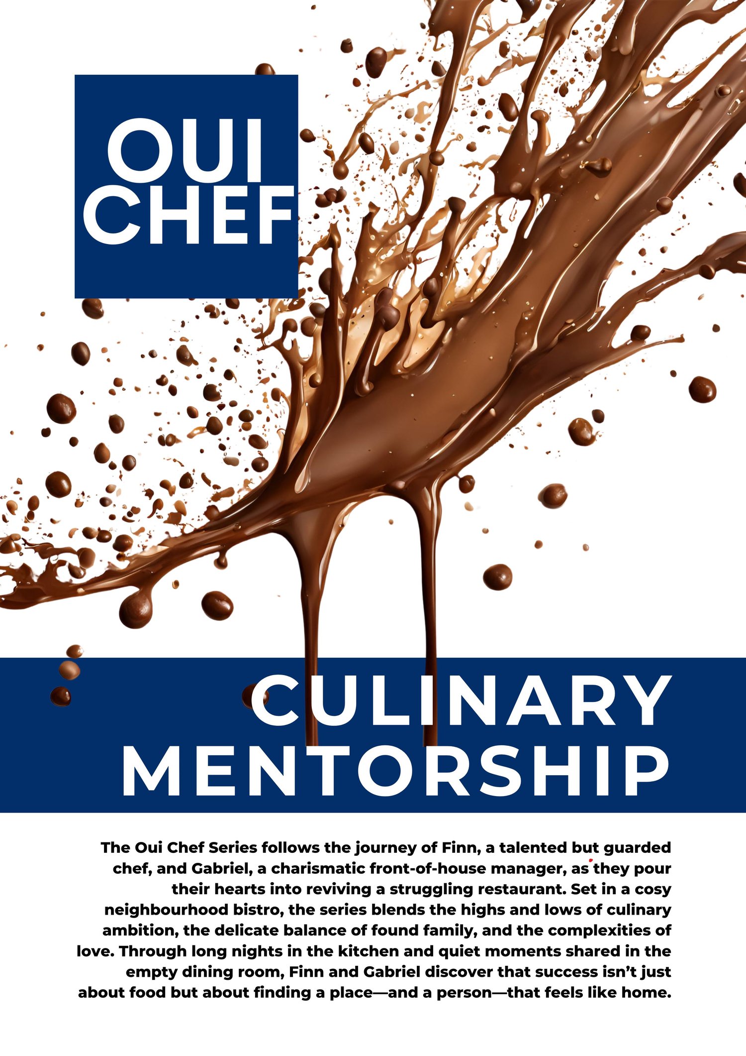 The Oui Chef Series follows the journey of Finn, a talented but guarded chef, and Gabriel, a charismatic front-of-house manager, as they pour their hearts into reviving a struggling restaurant. Set in a cosy neighbourhood bistro, the series blends the highs and lows of culinary ambition, the delicate balance of found family, and the complexities of love. Through long nights in the kitchen and quiet moments shared in the empty dining room, Finn and Gabriel discover that success isn’t just about food but about finding a place—and a person—that feels like home.
