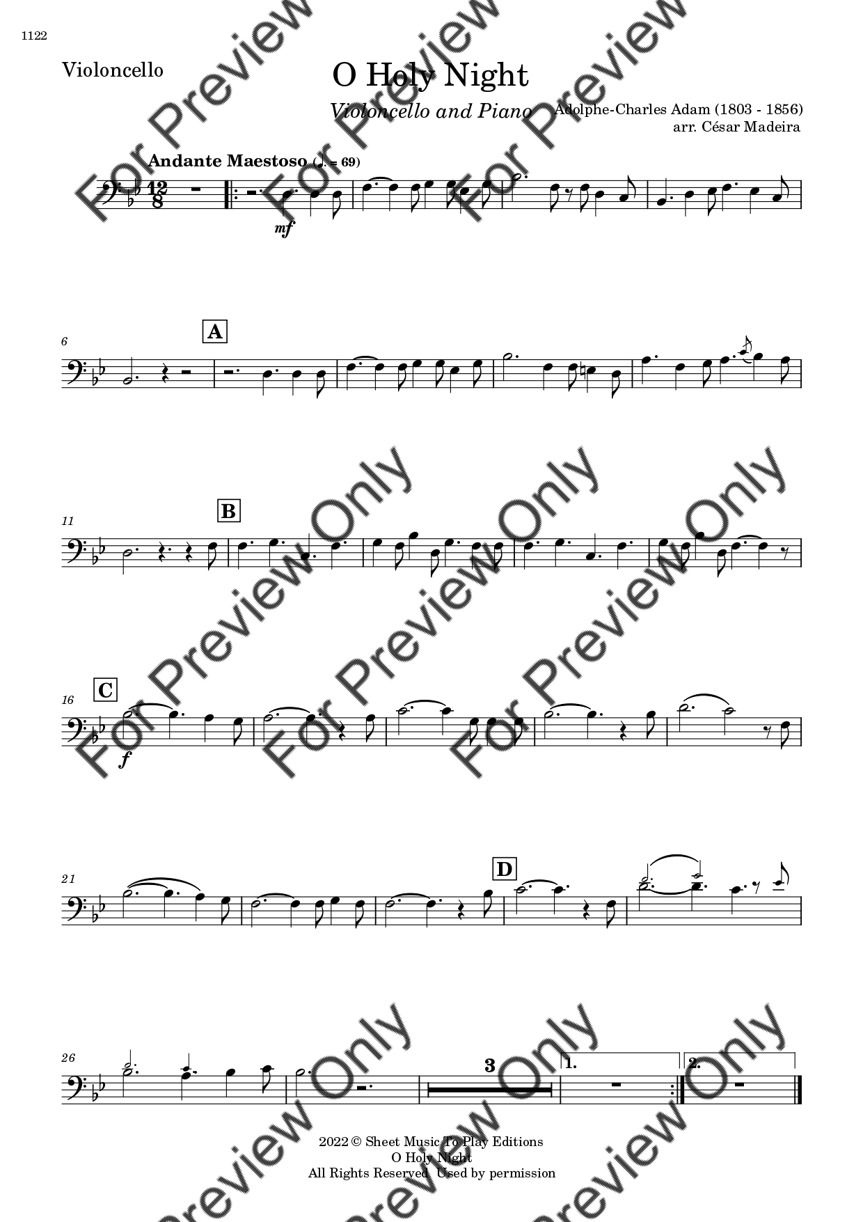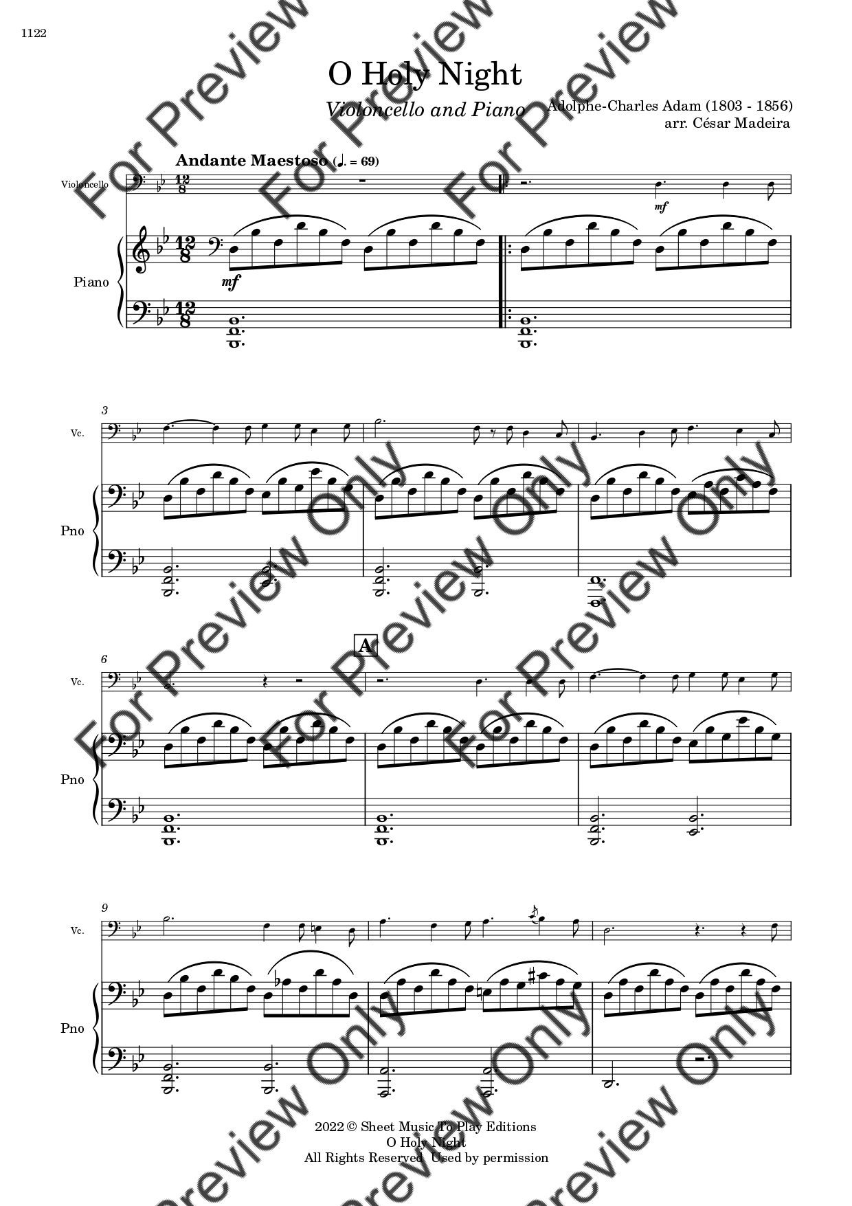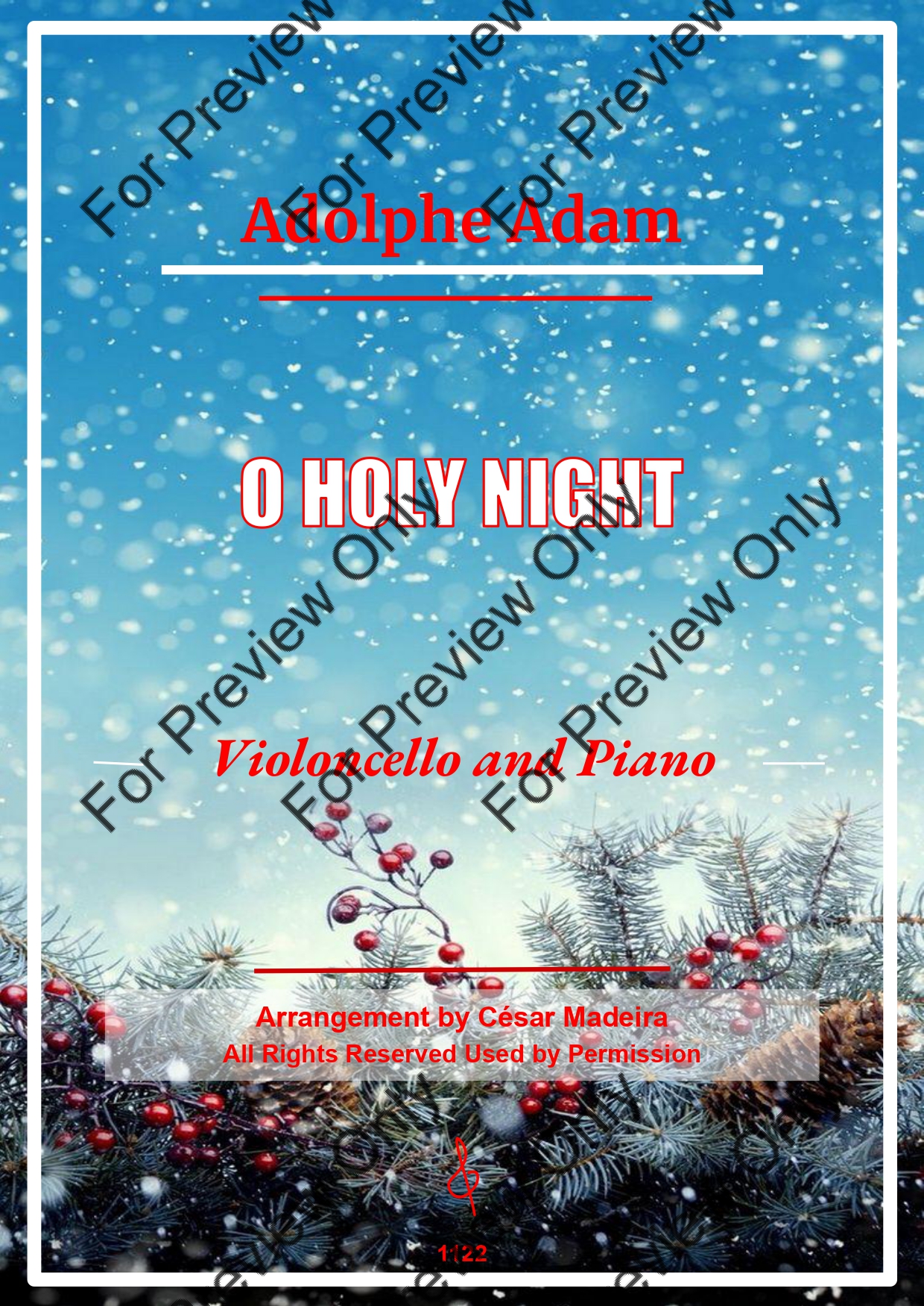 O Holy Night by Adolphe Adam. Arrangement for Violoncello and Piano. With Full Score and Individual Parts. Have fun!