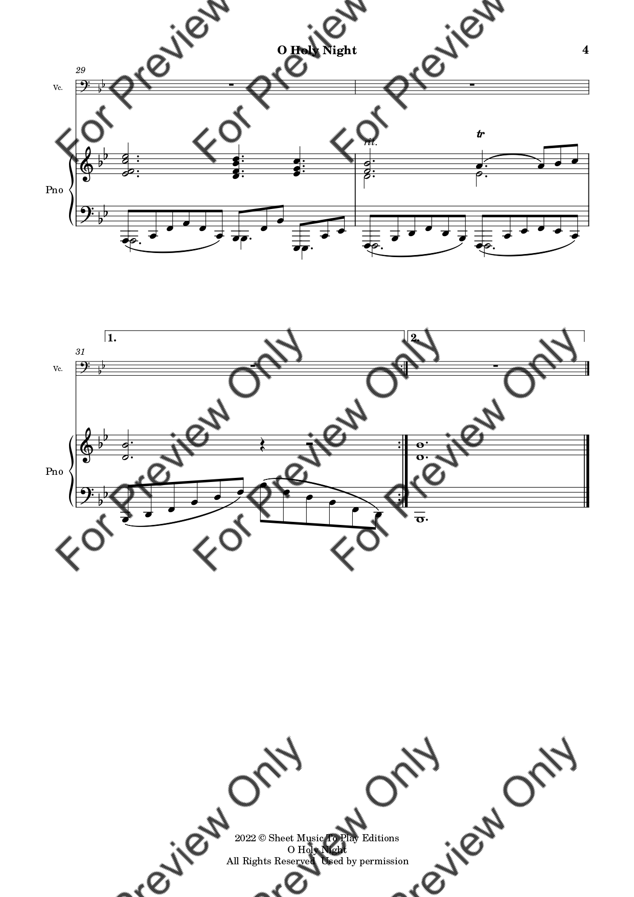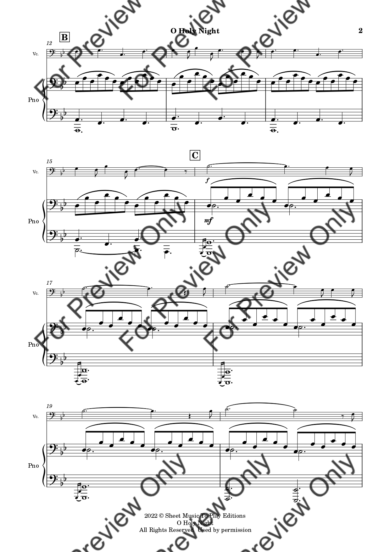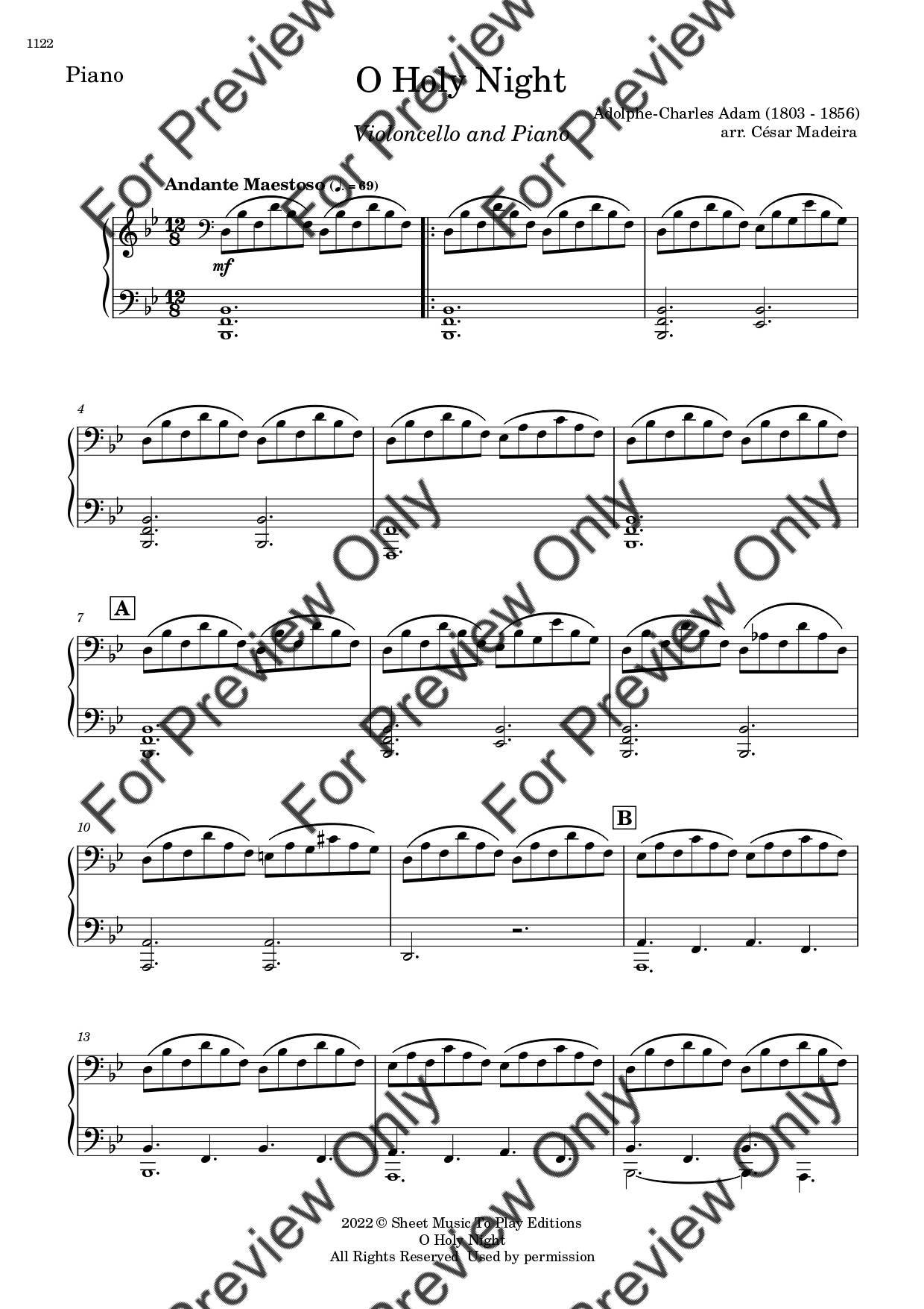 O Holy Night by Adolphe Adam. Arrangement for Violoncello and Piano. With Full Score and Individual Parts. Have fun!