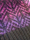 This is a pattern for a beanie style hat worked from the rib up and in the round using the stranded colourwork knitting technique.