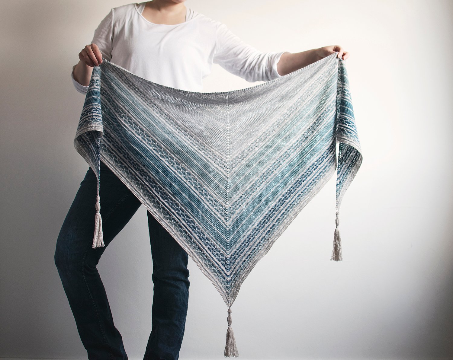 Finally, a tassel is added to each tip to finish the shawl.