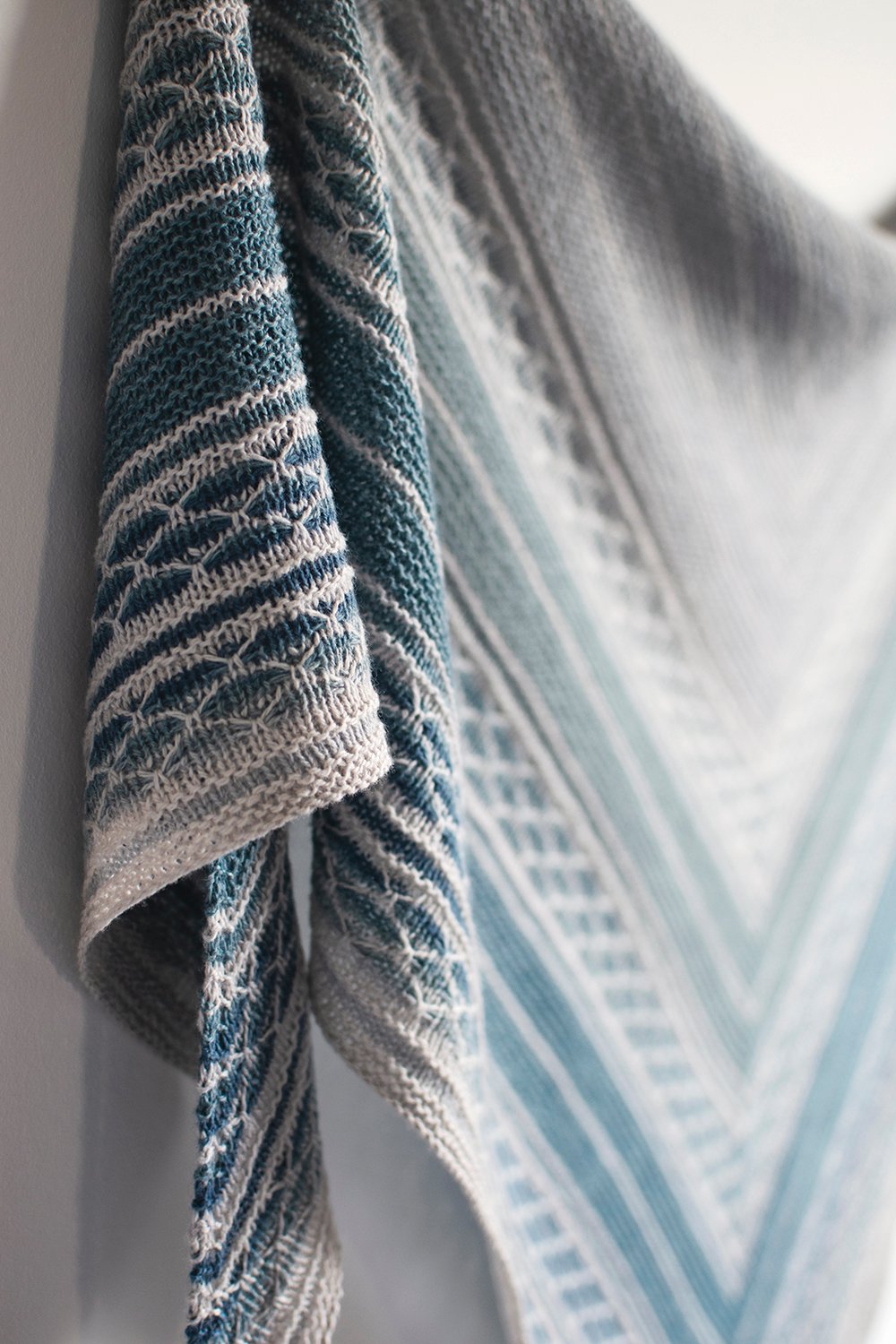 This shawl is named after one of my favorite places, the Lake Constance, or Bodensee in German. It is one of the largest lakes in Europa and is situated at the southern border of Germany, sharing its shores with Austria and Switzerland. It has its own very special beauty and climate, and for me it´s one of those places that make you feel at peace. When picking colors for this design, Lake Constance’s waters and beautiful environment immediately sprang to mind.