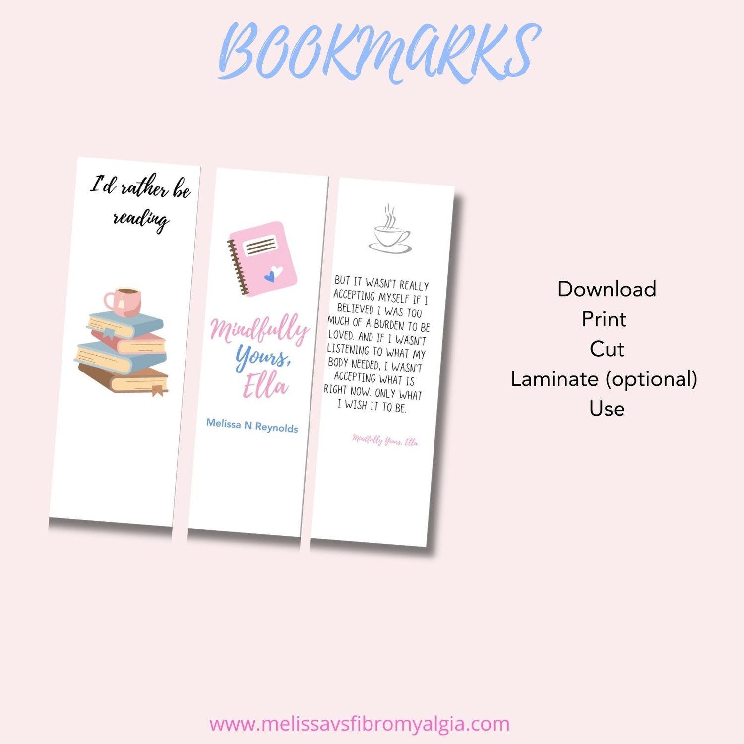I created some bookmarks for you to celebrate Mindfully Yours, Ella's release.