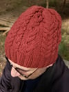 The Towline Hat is cozy cabled hat that harkens back to classic Aran sweaters, with options for a beanie or a foldover ribbed brim to keep your ears toasty this winter. I knit the original version using handspun,