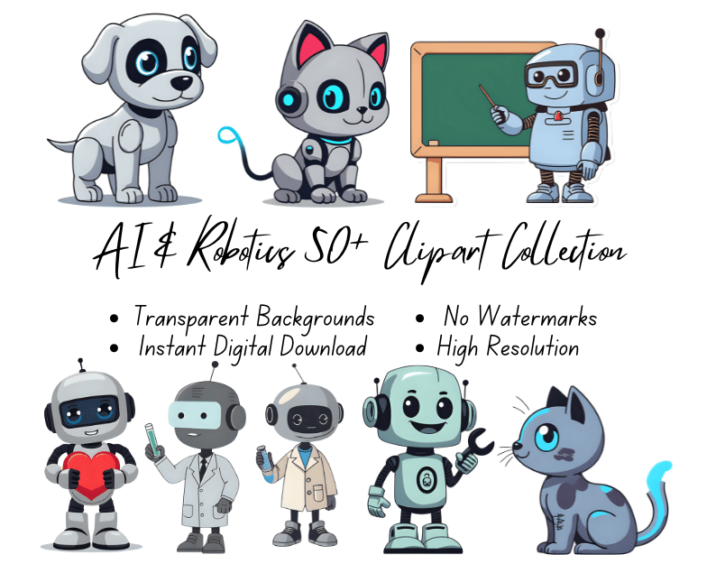 50+ AI & Robotics Clipart Collection | High-Resolution | Instant Digital Download | No Watermark