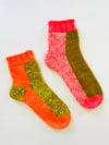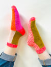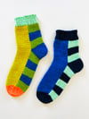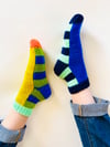 The Halfsies Socks are cozy, quick, and easy socks that are all about color play! These socks are worked flat using very simple intarsia and then sewn together. Don't worry if you've never worked intarsia or sewn socks before - I have video tutorials to walk you through it!