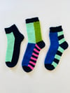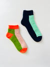 The Halfsies Socks were designed in collaboration with Indie Yarn Club, using Happy Feet Merino Sock Yarn (100% Superwash Merino, 400 yds/365 m per 100g skein).