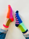 These socks are totally customizable, with unlimited possibilities for how you can knit up your socks. Have fun playing with color and making the perfect socks for you!