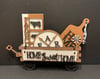 wagon measures 12" long approx 4" high and 1.5" deep. Wagon stands on its own and Season Sets sit inside the wagon. Each wagon is cut from 1/4" Baltic birch and is painted in dark brown with black wheels our wagons are laser cut and hand painted.