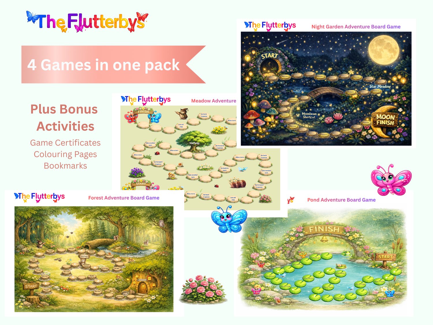 🦋 Flutterbys Ultimate Board Games Pack 4 Magical Printable Adventures for Kids