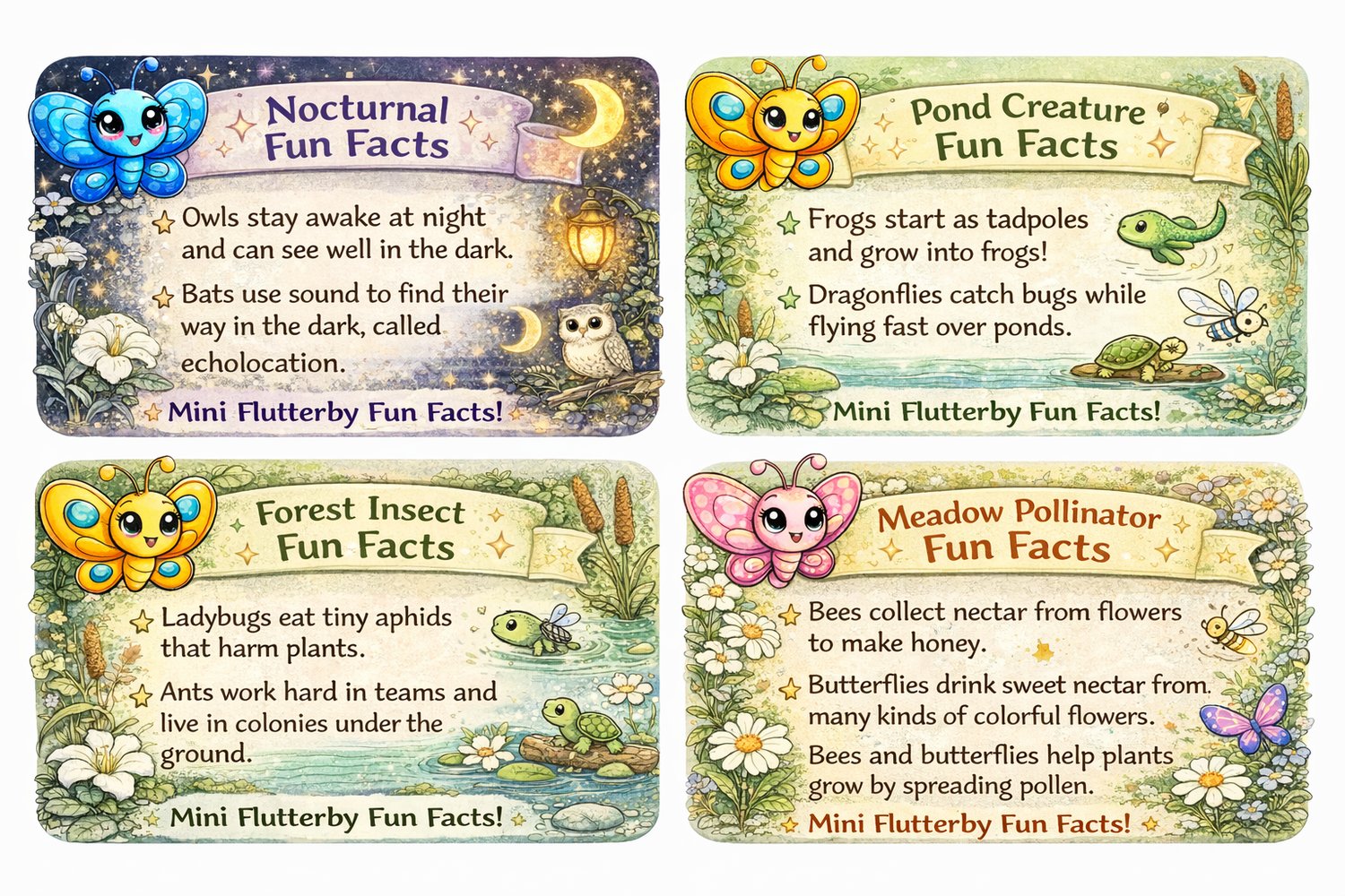 Each game takes little players on a gentle adventure through a different part of Flutterby Meadow — from sunny fields and playful ponds to magical forests and glowing night time gardens. Perfect for family fun, classrooms, rainy days, birthday activities, and screen-free play.