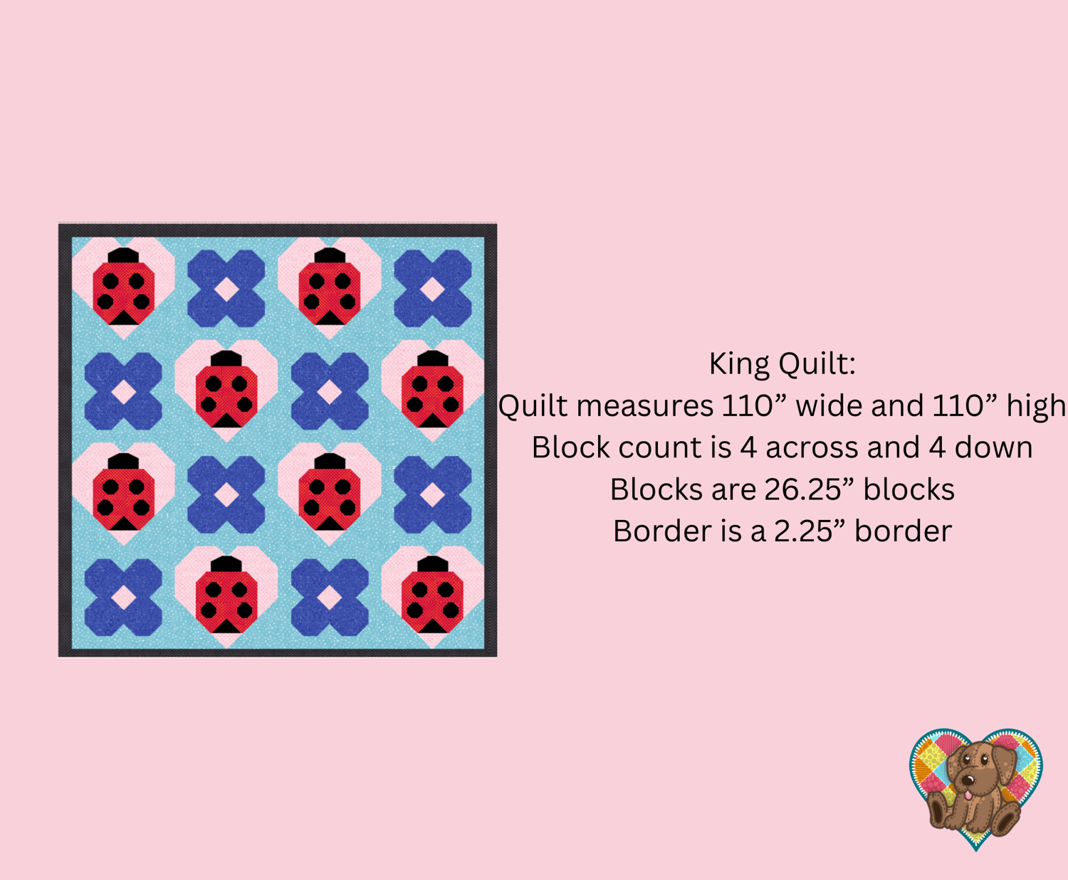 *Note: This pattern includes instructions for a lap (64.5" X 64.5"), twin (73" X 90"), queen (90" X 107"), and king (110" X 110") size quilt. * Blocks are traditional pieced blocks.