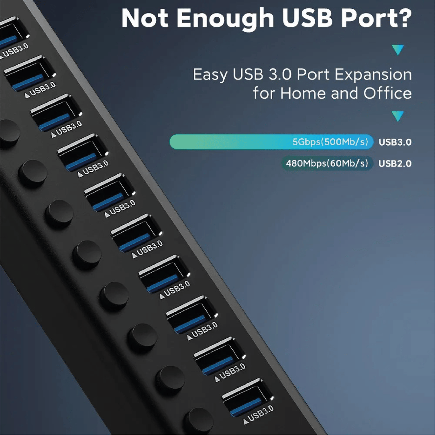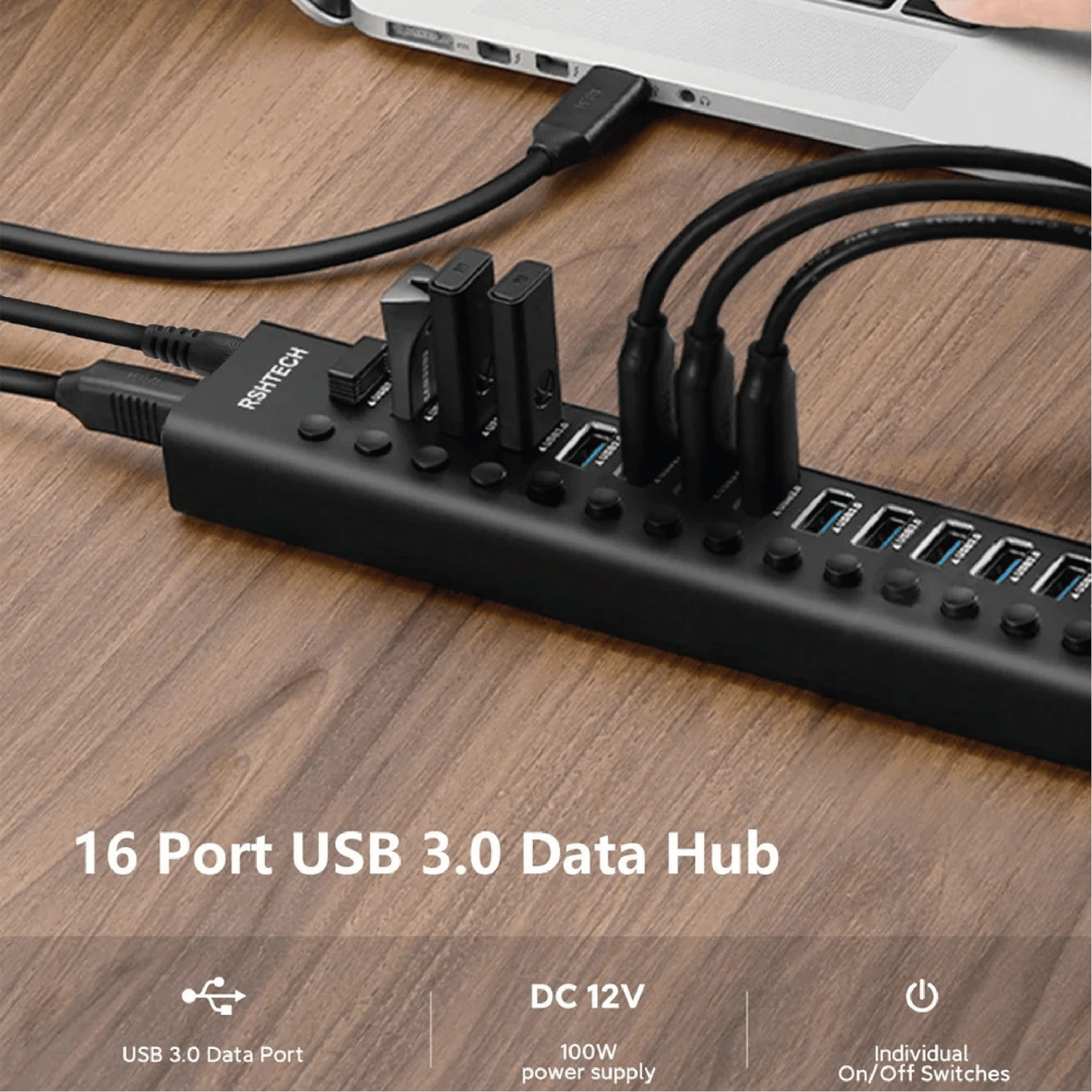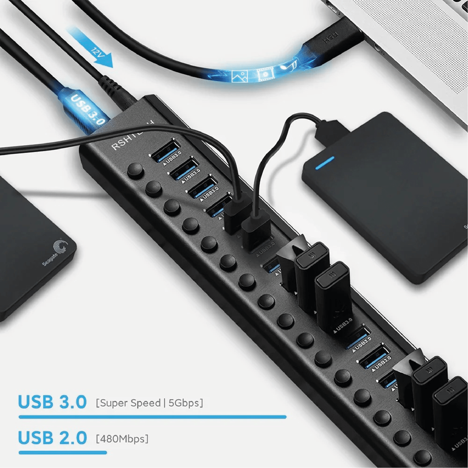 Hub USB 3.0 RSHTech 10/13/16 ports avec interrupteurs individuels