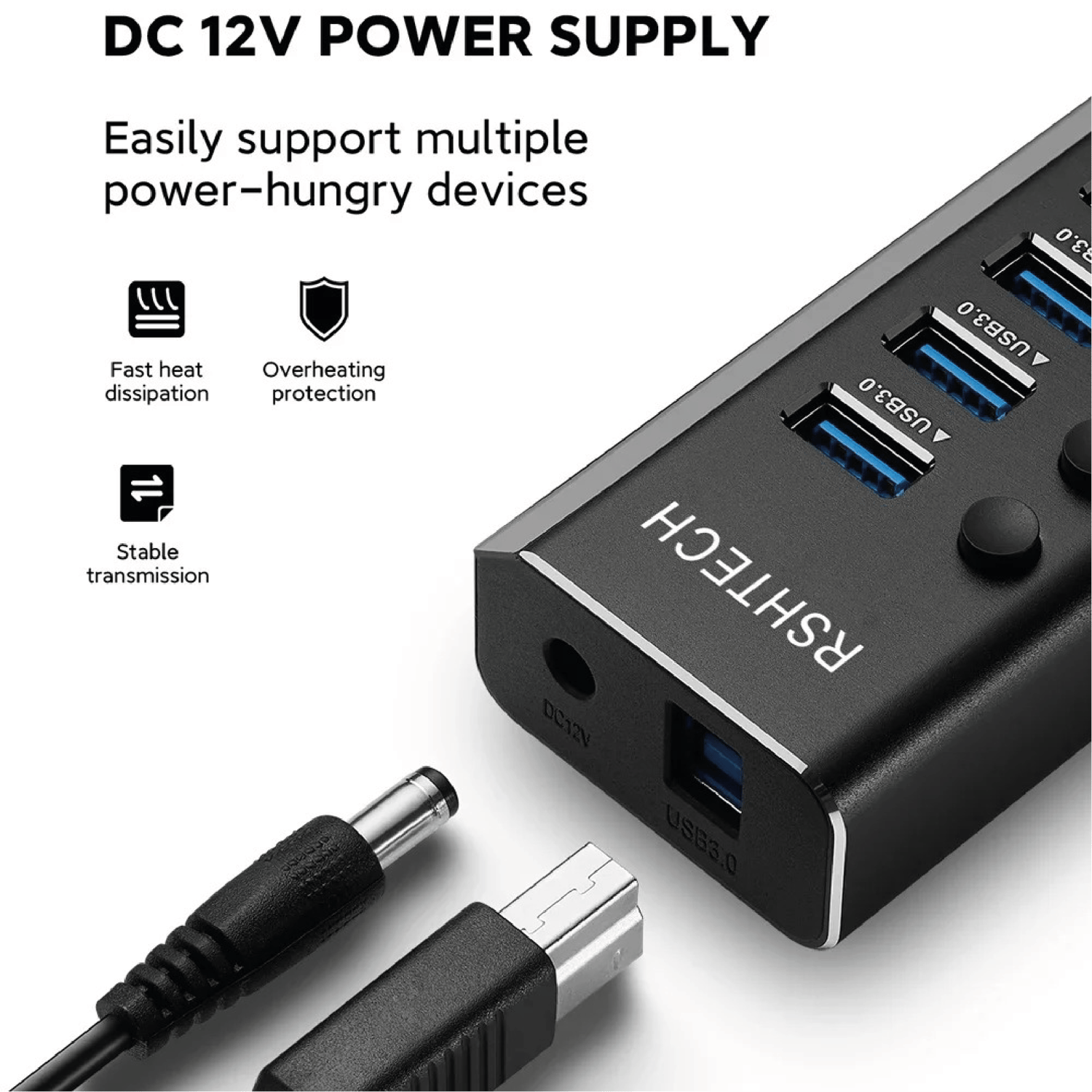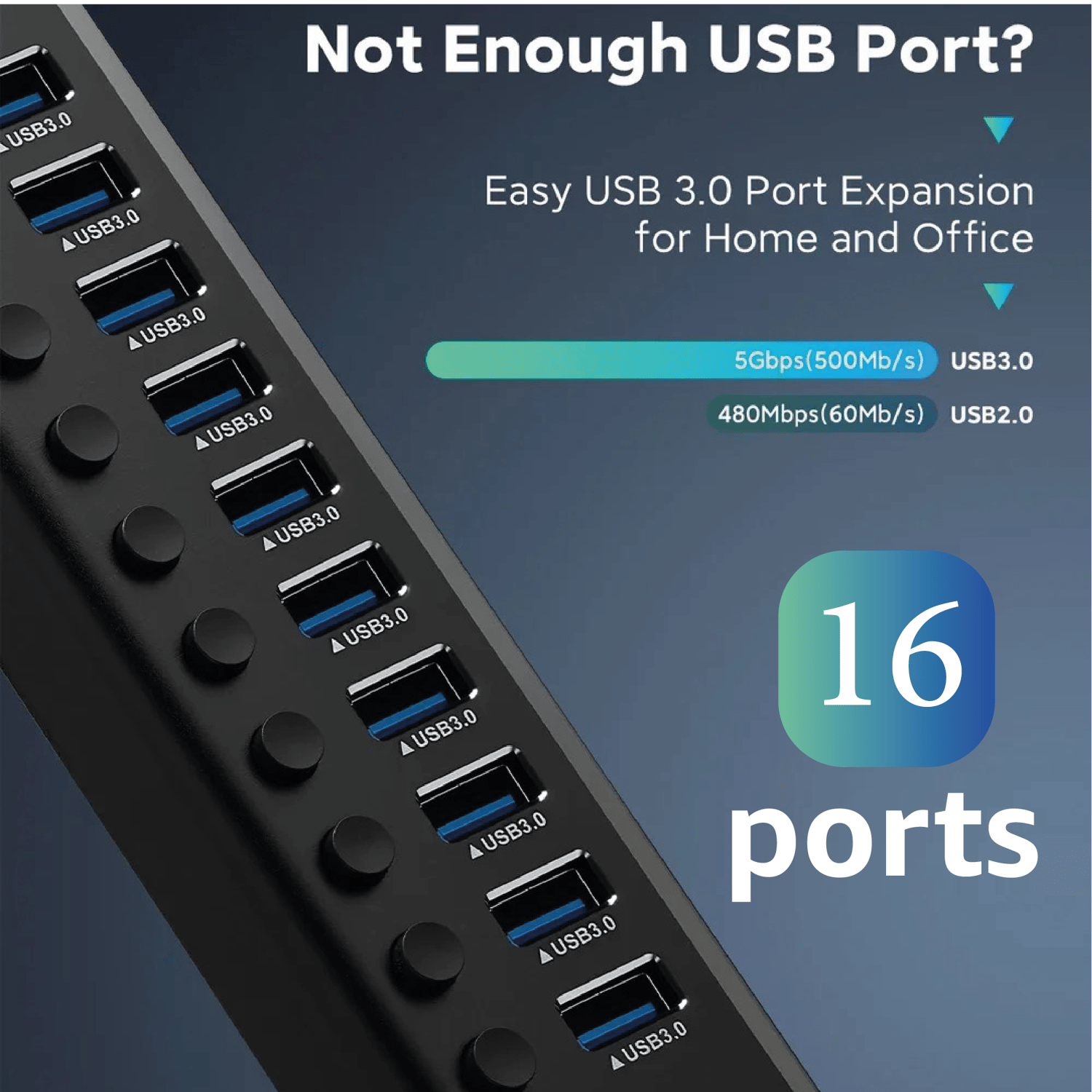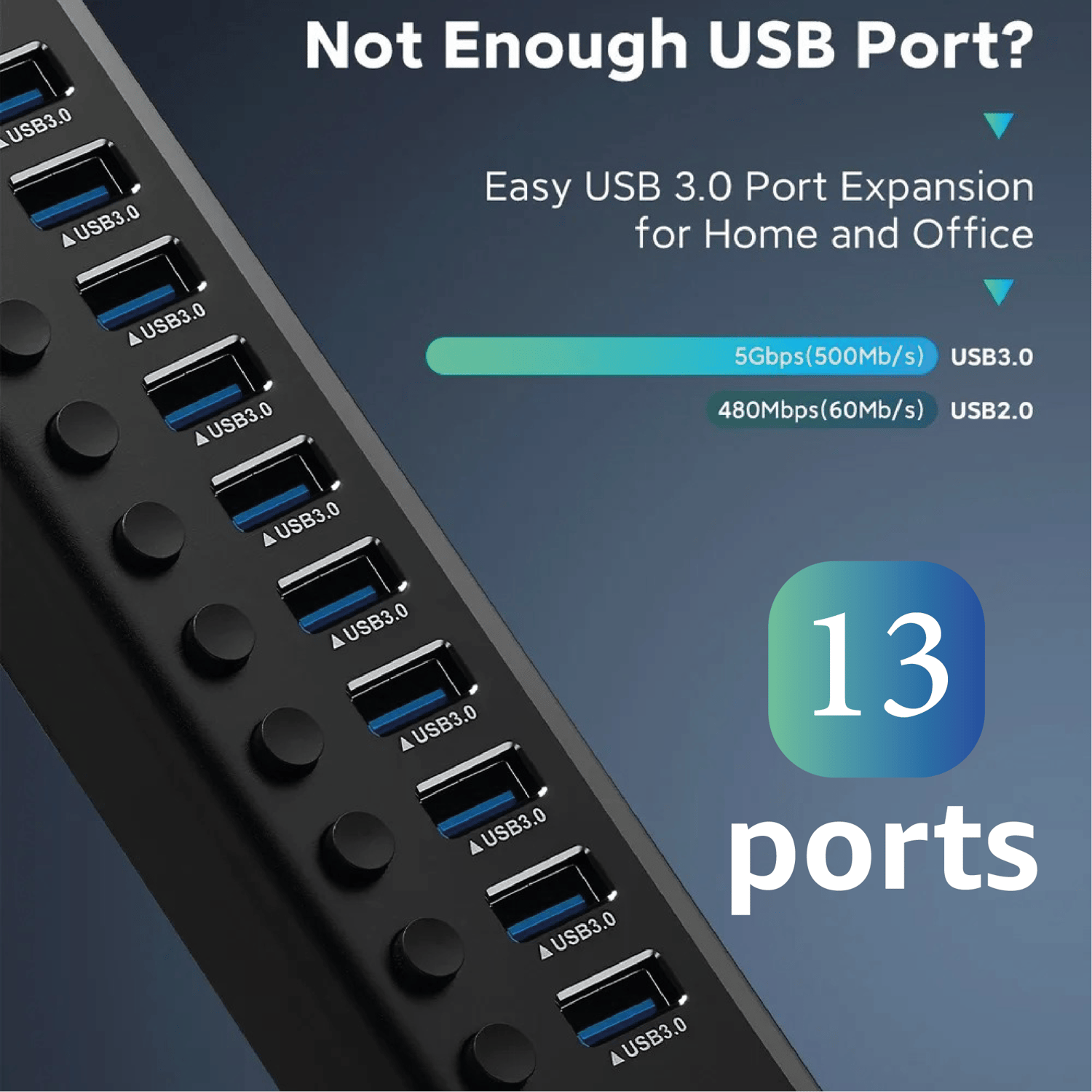 Hub USB 3.0 RSHTech 10/13/16 ports avec interrupteurs individuels