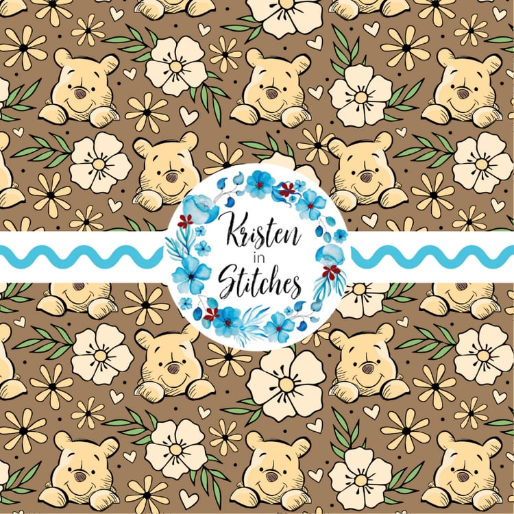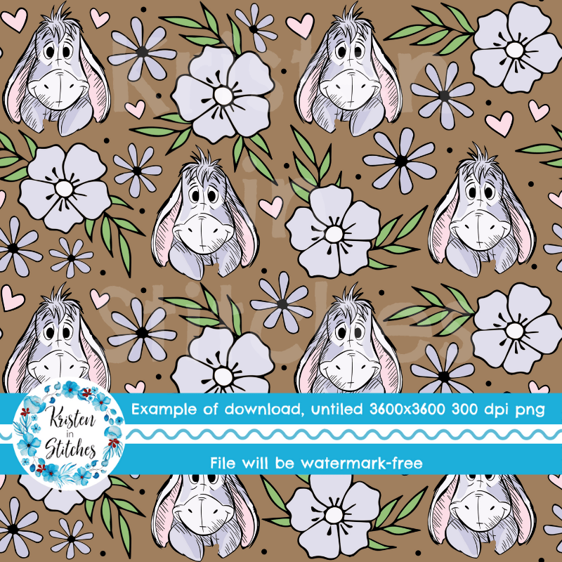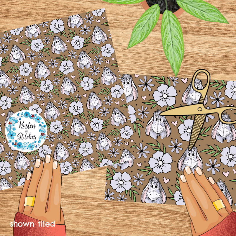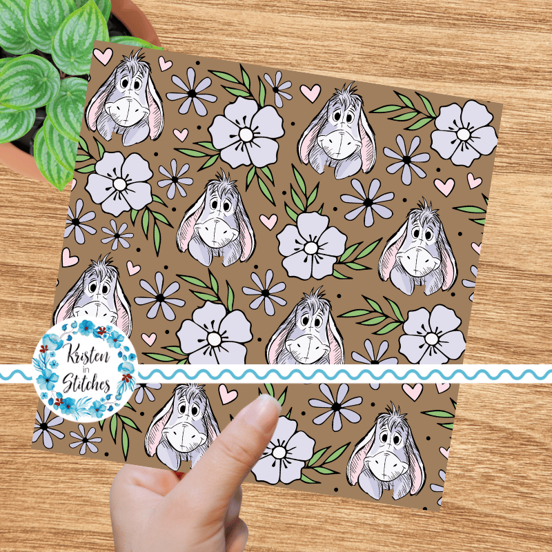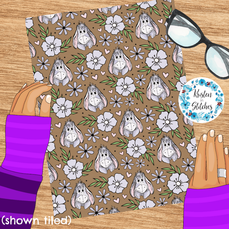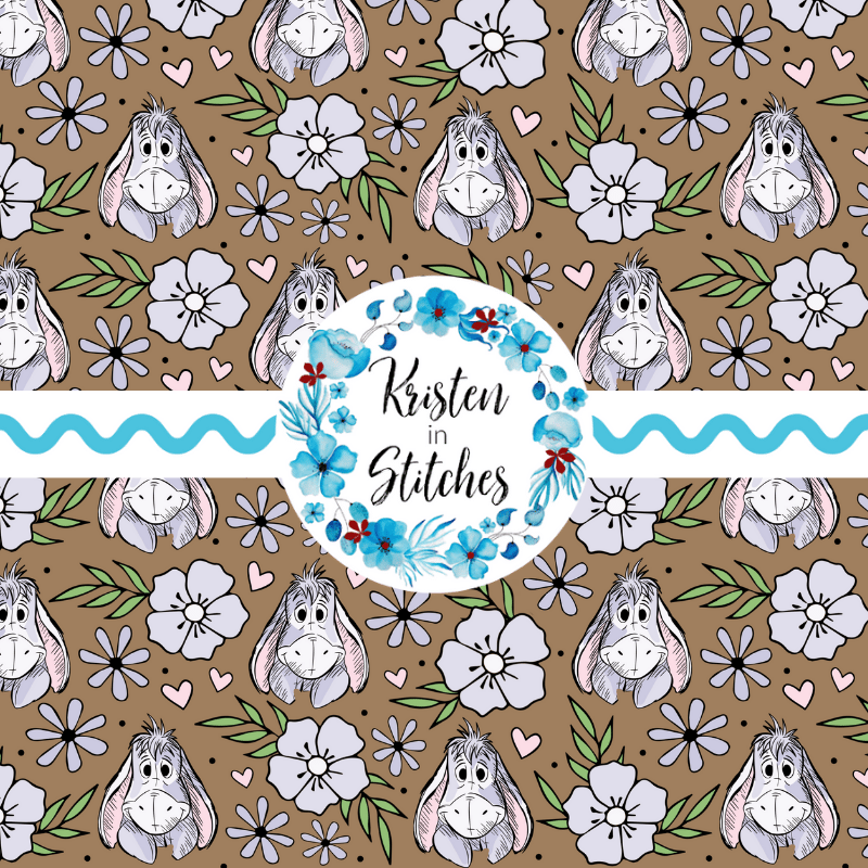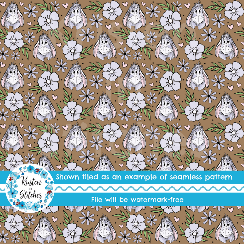 Eeyore Floral Seamless Pattern, Classic Winnie the Pooh Nursery, Warm Brown